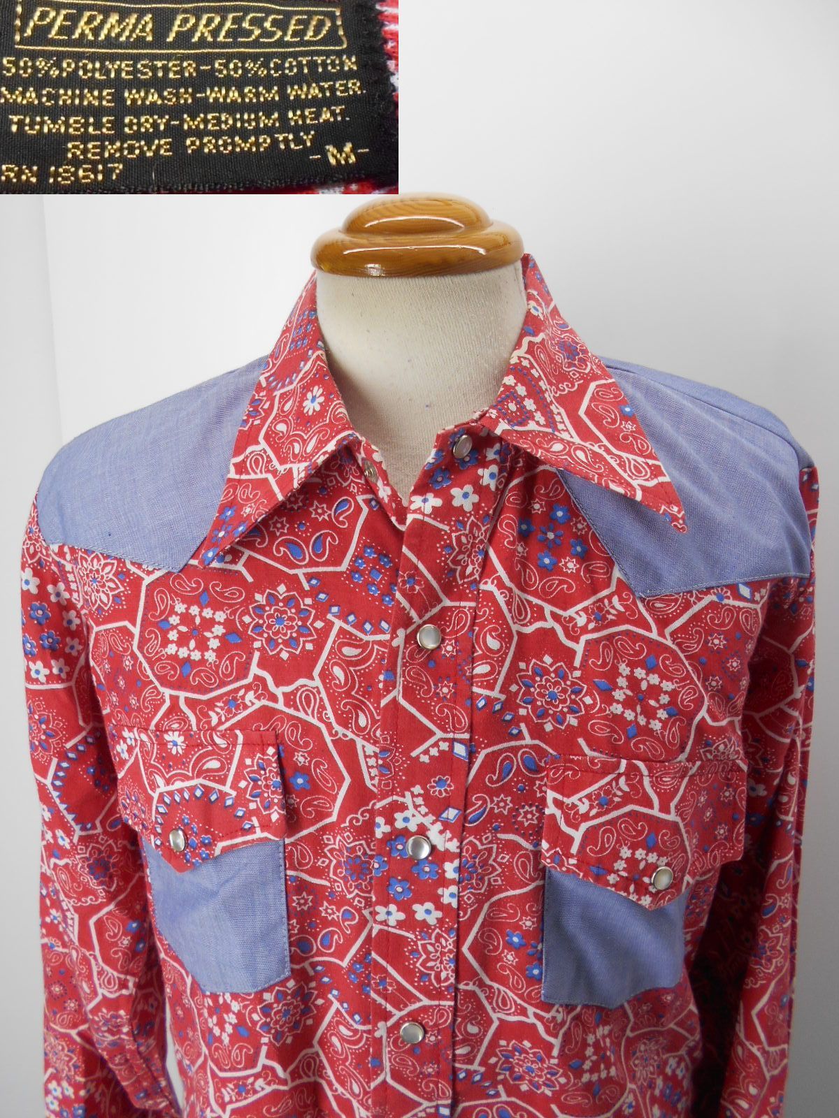 70s ウエスタン 長袖シャツ メンズ m 赤 ペイズリー パーティー アメカジ 古着 E450 古着屋 ジョージア